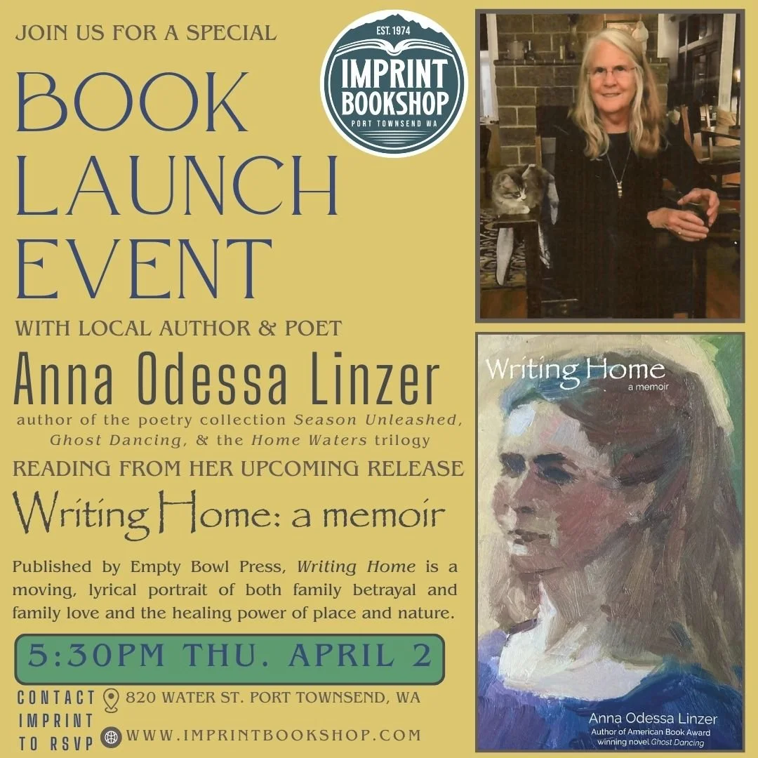 Join us for a book launch event for Writing Home, a memoirwritten by local author Anna Odessa Linzer, also published with Empty Bowl in Seasons Unleashed. The event will take place on Thursday, April 2, at 5:30 p.m., and will feature a reading from the upcoming novel. Writing Home is a moving, lyrical portrait of both family betrayal and family love and the healing power of place and nature.