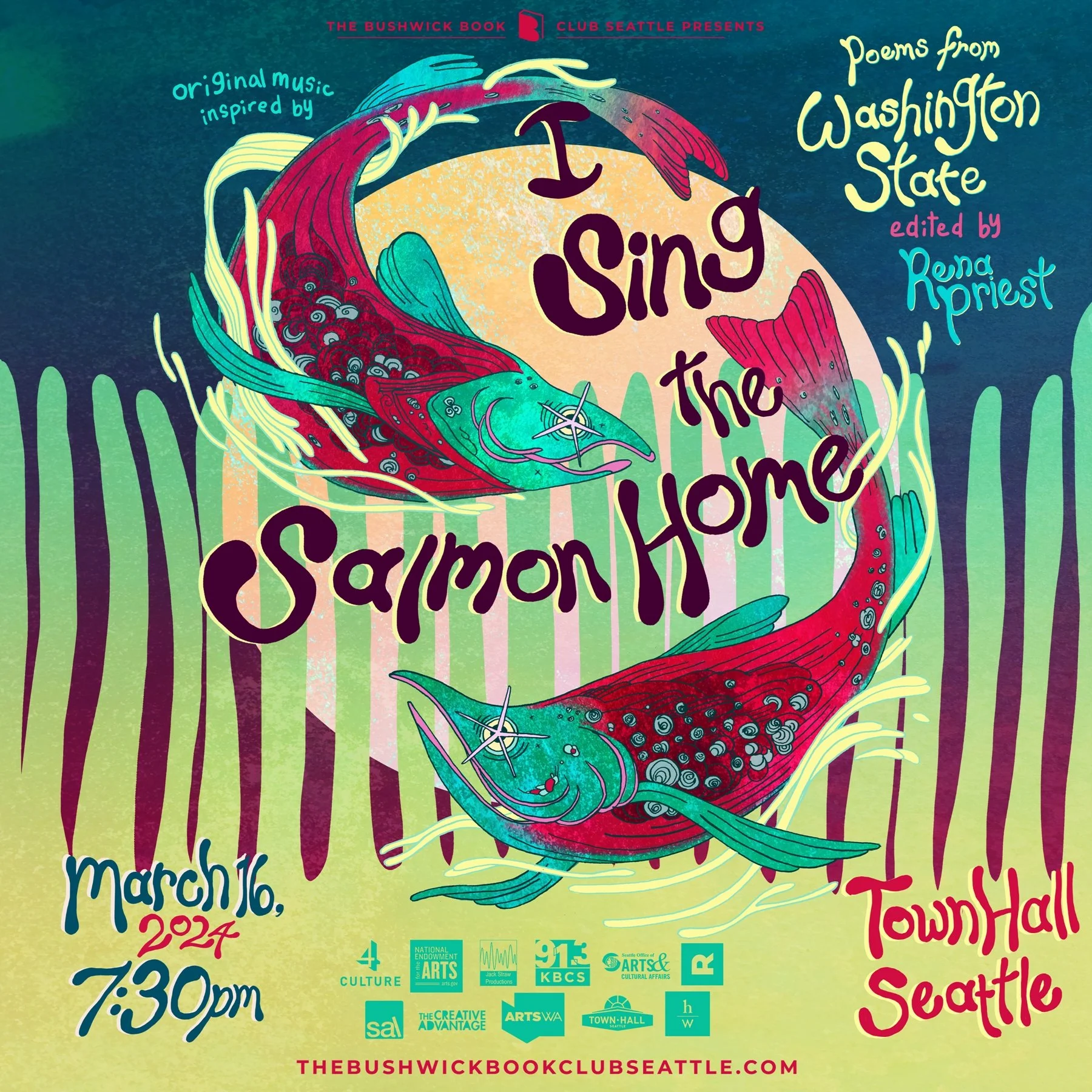 In other exciting news, the Bushwick Book Club will be performing music inspired by the anthology edited by Rena Priest, I Sing the Salmon Home, on March 16 at 7:30 pm at Town Hall in Seattle. Many of the contributors will be in the audience that night—and we’ll be there selling copies of the anthology. If you’re in Seattle, we hope you’ll come join us!